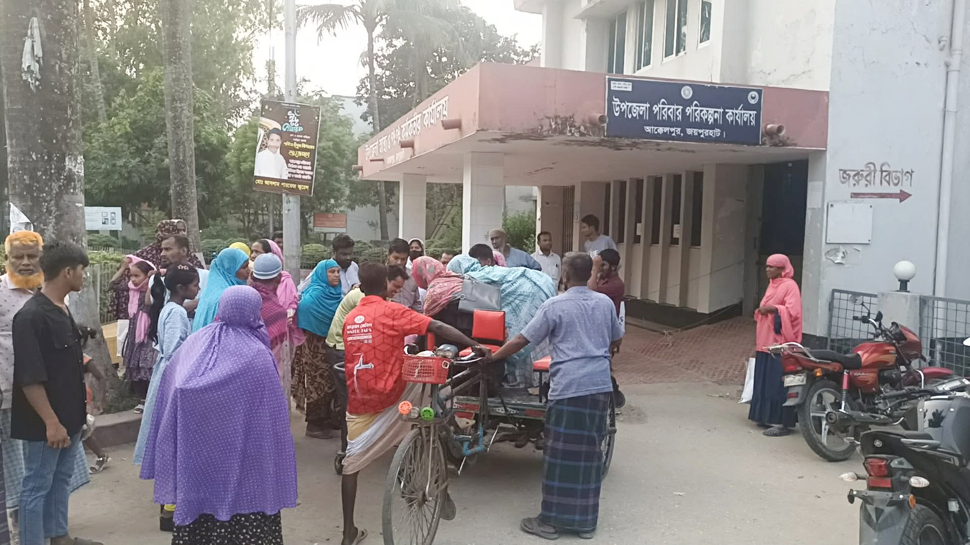 বুকে ব্যাথা নিয়ে জয়পুরহাটের আক্কেলপুর উপজেলা স্বাস্থ্য কমপ্লেক্সের জরুরী বিভাগে চিকিৎসা নিতে এসেছিলেন জোসনা আরা নামের এক অবসরপ্রাপ্ত শিক্ষিকা। তবে জরুরী বিভাগে কর্তব্যরত চিকিৎসক না থাকায় সময়মতো চিকিৎসা না পেয়ে তাঁর মৃত্যু হয়েছে বলে অভিযোগ স্বজনদের। ঘটনাটি মঙ্গলবার (৩১ মার্চ) দুপুরে ঘটেছে। পরে হাসপাতালের পক্ষ থেকে ফোন পেয়ে পরে পুলিশ এসে পরিস্থিতি নিয়ন্ত্রণ করেন।