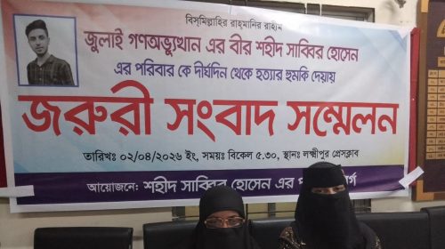 লক্ষ্মীপুরে জুলাই আন্দোলনে নিহত শহীদ সাব্বিরের পরিবারের সদস্যদের ওপর হামলা ও হুমকির অভিযোগ তুলে সংবাদ সম্মেলন করেছে তার পরিবার। বৃহস্পতিবার (০২ এপ্রিল) বিকেলে লক্ষ্মীপুর প্রেসক্লাবে এ সংবাদ…